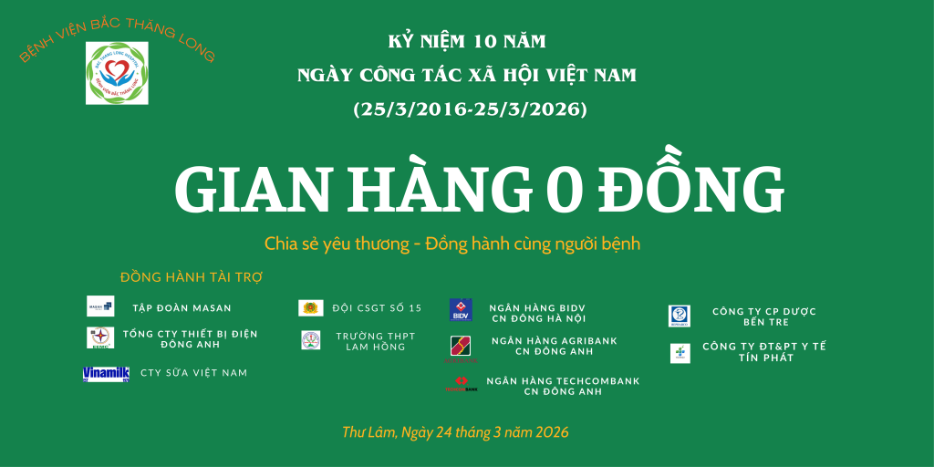 Chiều 24/3, nhân dịp Kỷ niệm 10 năm ngày Công tác xã hội Việt Nam (25/03/2016 – 25/03/2026) phòng Công tác xã hội bệnh viện Bắc Thăng Long phối hợp với các đơn vị tài trợ, các cá nhân hảo tâm tổ chức Chương trình “Chia sẻ yêu thương – Đồng hành cùng người bệnh” với nhiều gian hàng để người bệnh sắm những vật dụng, thực phẩm thiết yếu ngay tại bệnh viện với giá 0 đồng và suất ăn miễn phí cho bệnh nhân phải ở lại viện điều trị trong ngày.
