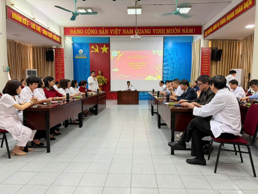 Sáng 23/02/2026, trong không khí phấn khởi của những ngày đầu năm mới và hướng tới kỷ niệm 71 năm Ngày Thầy thuốc Việt Nam 27/2, Bệnh viện Bắc Thăng Long đã tổ chức chương trình khai xuân và gặp mặt đầu năm với sự tham gia của Ban Giám đốc, lãnh đạo các khoa, phòng và cùng toàn thể cán bộ, y – bác sĩ, người lao động bệnh viện.